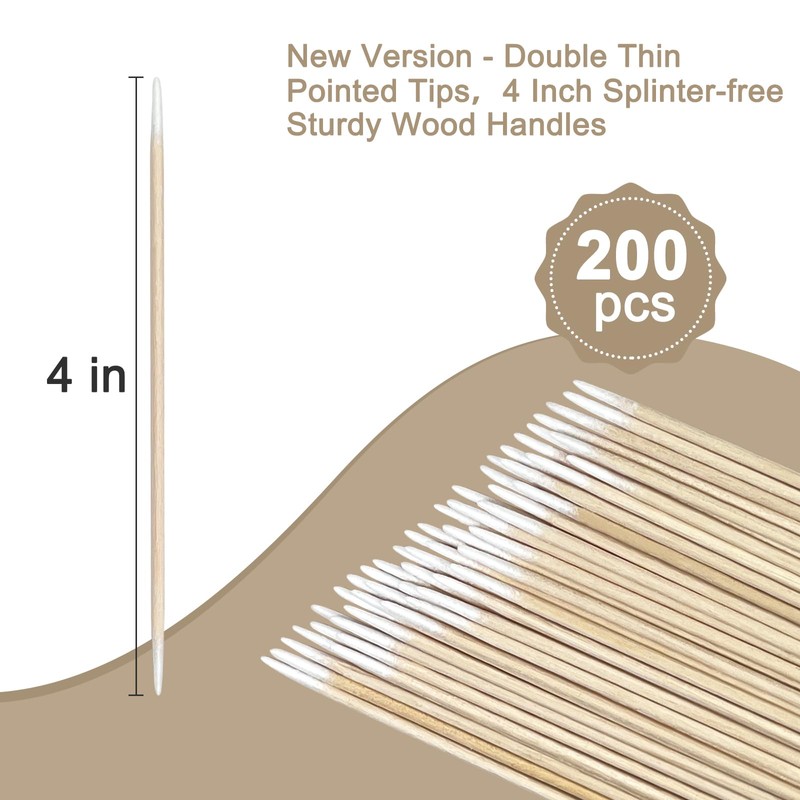 Pointed Cotton Swabs - 4 Inch Microblading Cotton Buds with Wooden Sticks - Precition Tip Cotton Swabs for Makeup Touch-ups - Tattoo Permanent Supplies (200 pcs - double tips)
