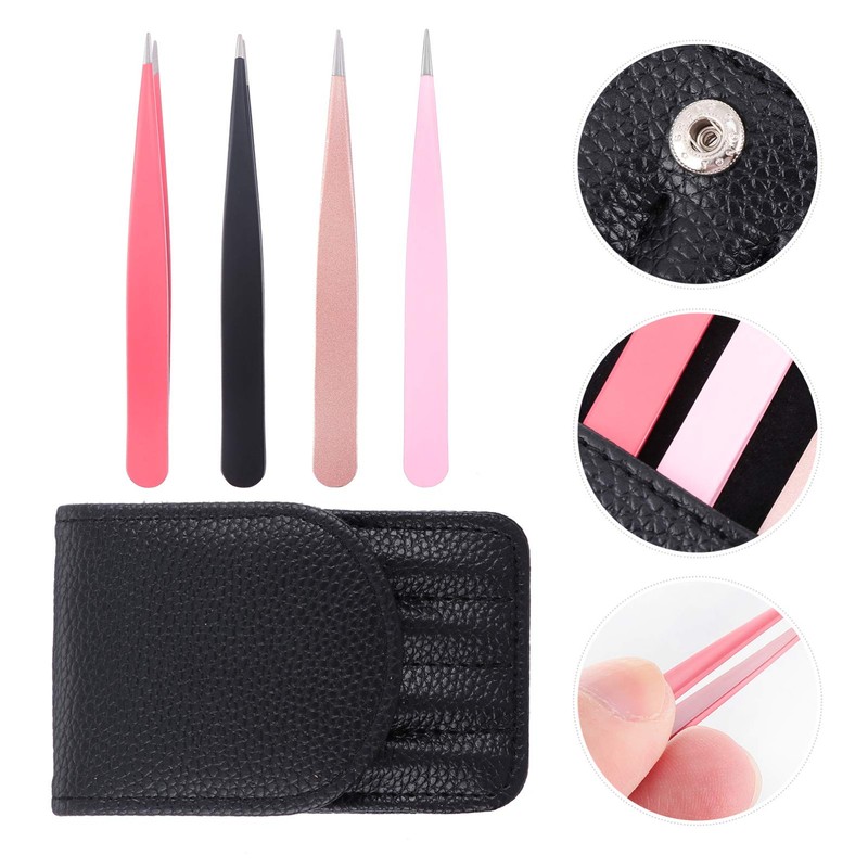 Pointy 4pcs Brow Set Stainless Steel Eyebrow Hair Remover Clips Cosmetic Splinter Point Tip for Women Ladies Eyelash Applicator Tool