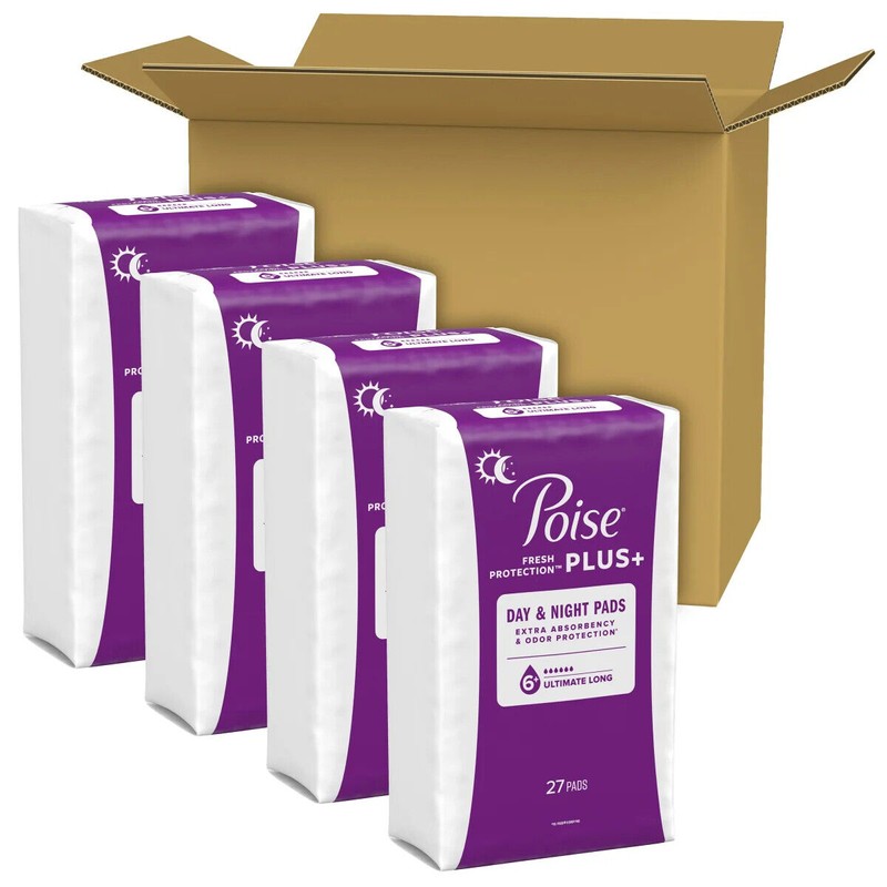 Poise Plus Incontinence Pads, Ultimate Absorbency Long, 108-count