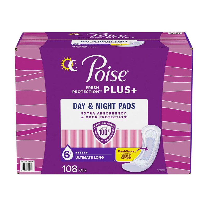 Handle bladder leaks confidently with a pad designed for day and night protection and comfort - Poise 6+ Drop Ultimate Absorbency Incontinence Pads for Women. Unlike period pads, which are meant for menstrual needs, Poise Plus Women’s Incontinence Pads are designed specifically for bladder leaks. With the Plus Promise, these day and night pads deliver extra absorbency and odor protection* for up to 12 hours of protection. Not only that, but these bladder leak pads offer up to 100% clean, dry and fresh protection. They also come with Poise's new FreshSense system that locks in odor and wetness. Each incontinence pad features a Dry-Touch layer for a clean feel, Leak-Block sides for outstanding dryness and protection, and a CaptureCore that wicks away wetness in seconds for better bladder leak protection**. Our pads for bladder leaks are made without elemental chlorine or fragrance. Plus, Poise bladder control pads are individually wrapped and fit securely in your underwear. Shop for Poise Plus discreetly by having it shipped directly to your door. Poise Plus Incontinence Products are HSA/FSA-eligible in the US. (*vs. Poise 6 Drop Pads) (**vs. the leading period pad)