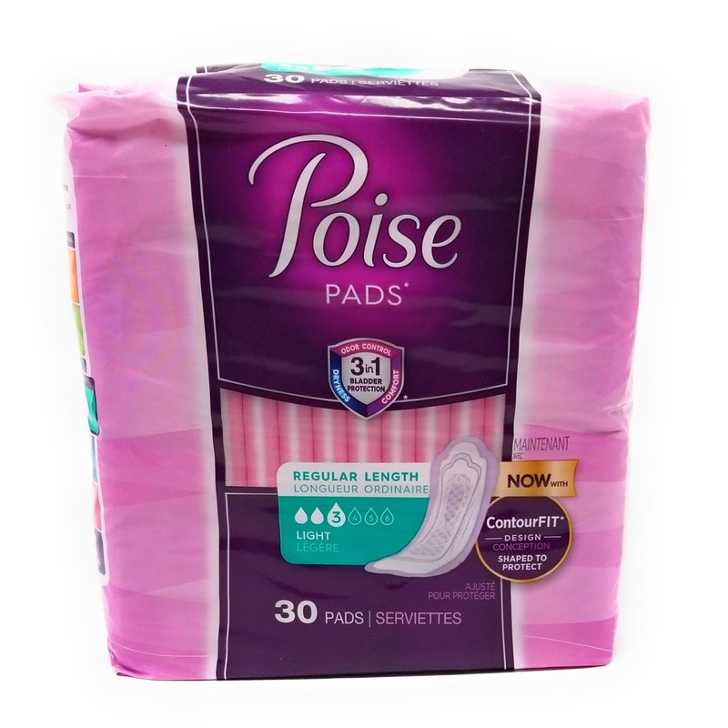 Poise Ultra Thins Light Absorbency Pads, 30 Count (Pack of 2)