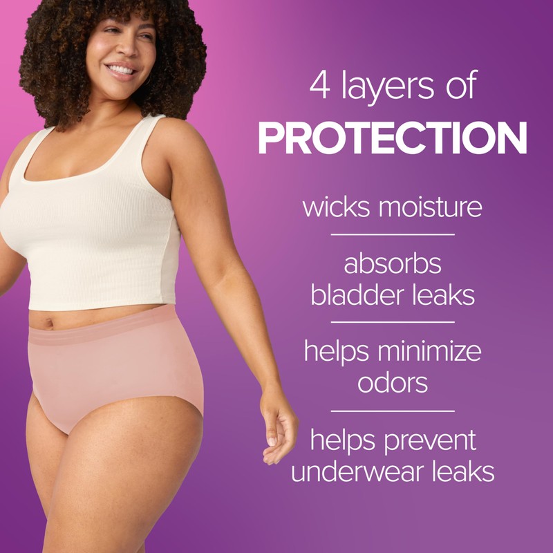 - 4 Layers of Incontinence Protection: Each Poise incontinence underwear wicks moisture, absorbs bladder leaks, helps minimize odors and helps prevent underwear leaks
