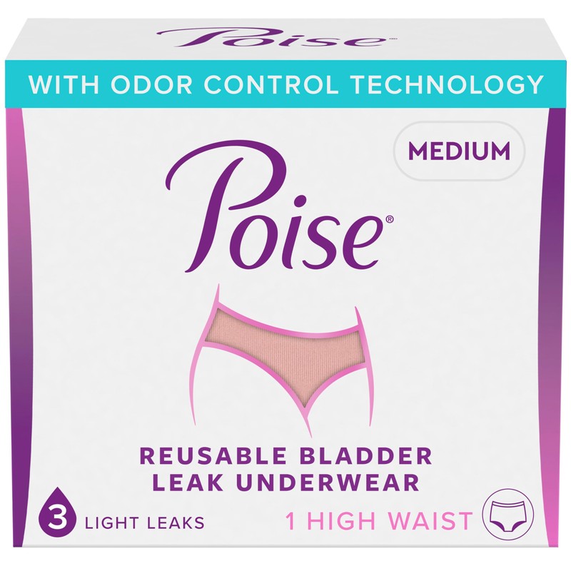 - Poise Reusable Adult Incontinence Underwear for Women: 1 count of washable bladder leak underwear, medium, high-waist cut, pink (1 underwear total)