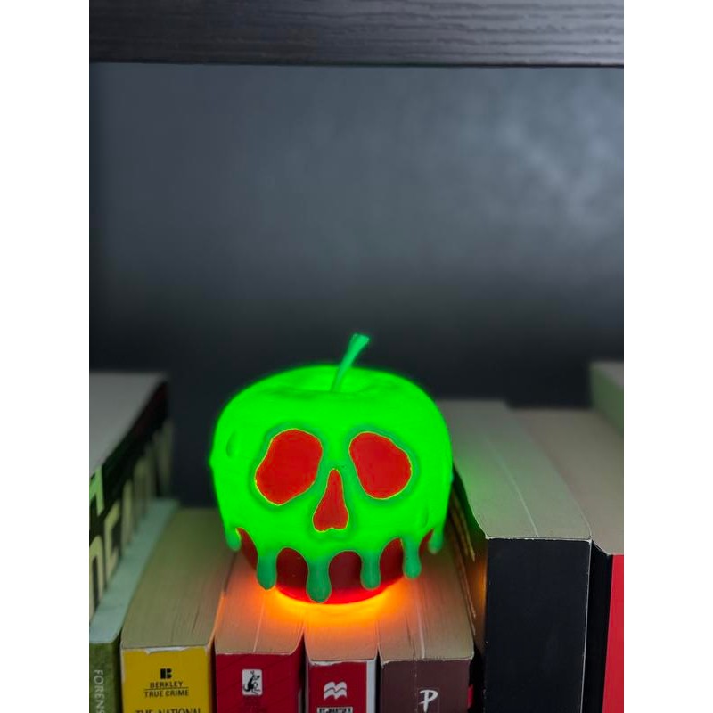 Bring a dash of magical mischief to your Halloween or everyday decor with this Poison Candy Apple Light! Inspired by the darkly enchanting tales of wicked witches and mysterious queens, this light-up apple is the perfect addition for any fan of magical villains. Expertly crafted and 3D printed, it features a playful, skull-like drip design that glows with a fun and spooky charm. Choose between a flickering light for that classic candle effect or a steady glow for a gentle, mysterious ambiance.