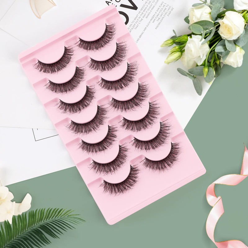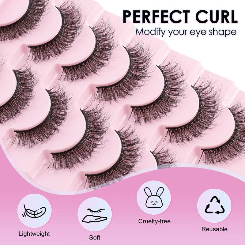 Poiuyoiu False Eyelashes Wispy Fluffy Lashes Natural Look Faux Mink Lashes 7 Pairs Fake Eyelashes 3D Strip Lashes Reusable Doll Eye Lash Extension Lightweight and Soft Full Lashes