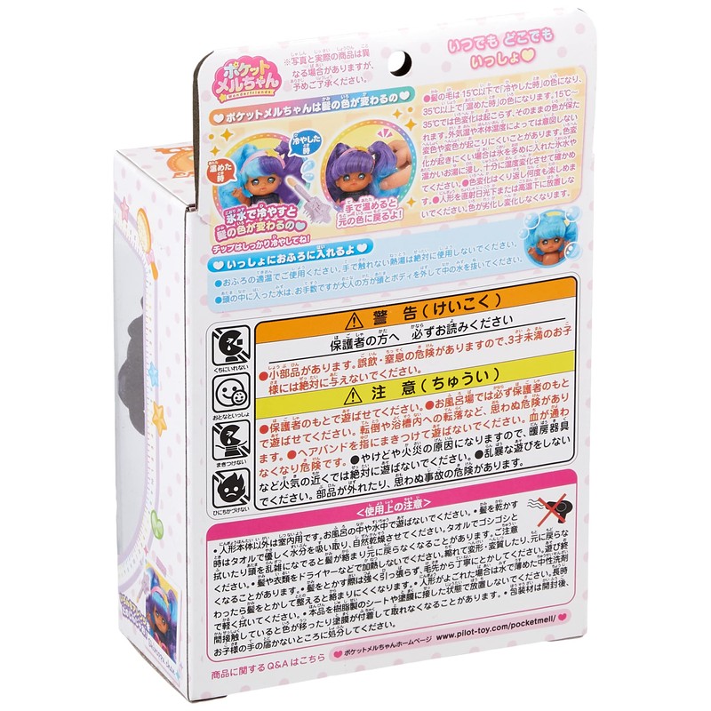• The pocket mel-chan series is sized at the palm of your hand, so you can play it with it anytime, Mel-chan's friend's Syrup-chan cools with ice water, and the hair color changes from light blue to purple. It will recover to its original color when warmed by hand