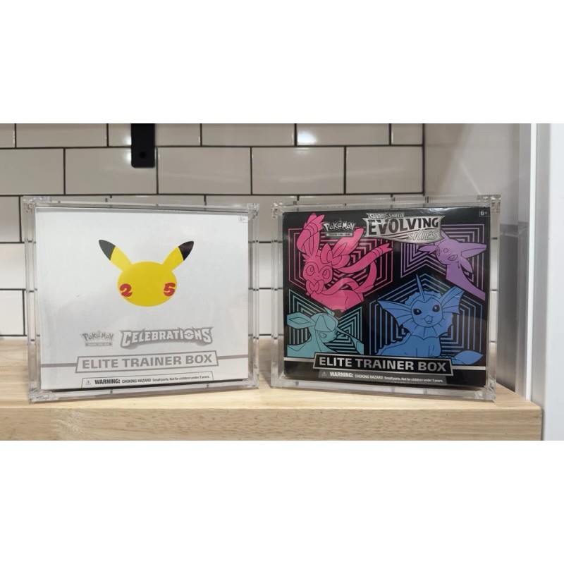 Looking for HIGH PREMIUM quality acrylic cases to protect and show off your English Pokemon ELITE TRAINER (ETB) ? We have them! Look at our reviews. The ORIGINAL premium Pokemon acrylic cases!