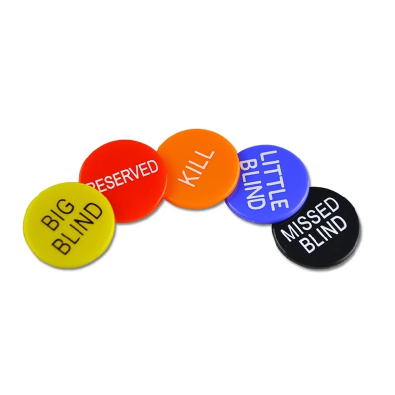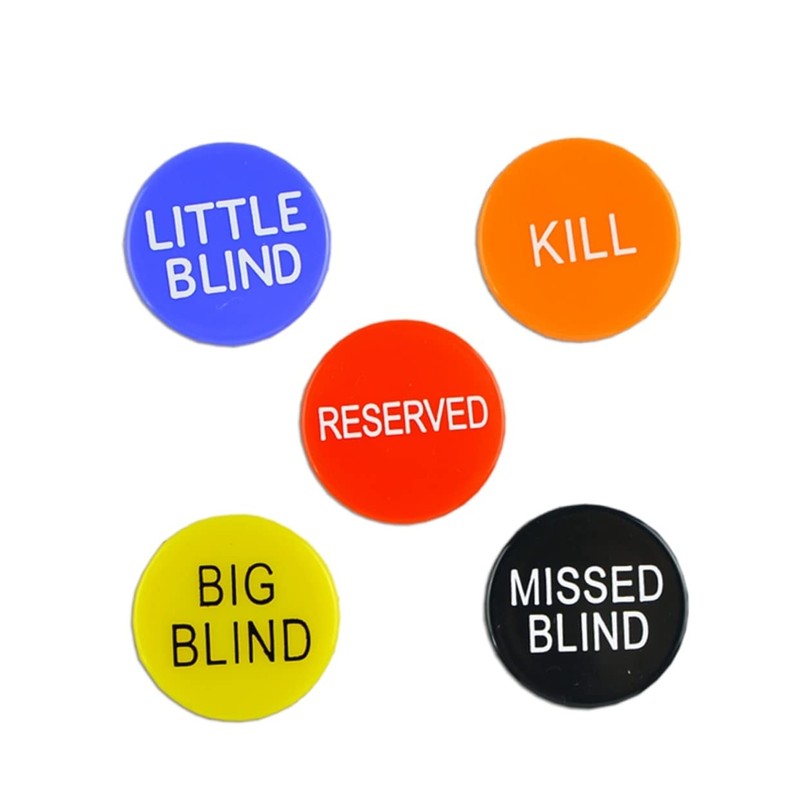 3 x Little Blind 3 x Big Blind 3 x Missed Bling 3 x Kill Poker Buttons 3 x Reserved Poker Buttons
