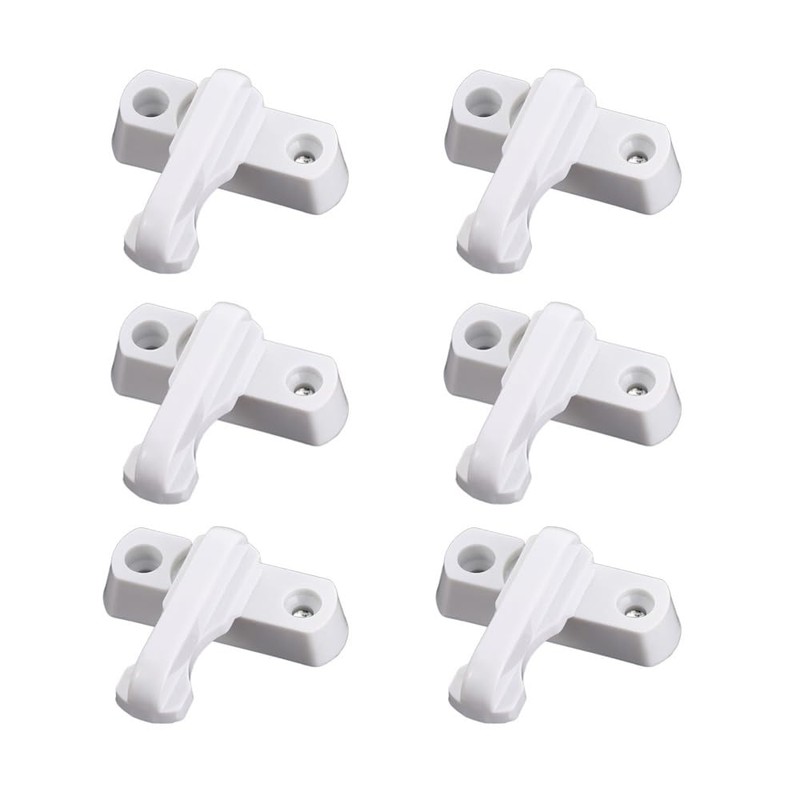 • Size: Package contains 6 domestic T-shaped plastic steel door and window locks, each 3.15*0.79*1.38inches (L*W*H) in white color.