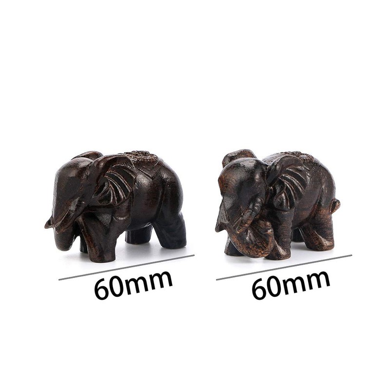 Pokinge Wooden Elephant Statue Decorations 2.36 inch Hand Carved Elephant Figurine Small Rustic Feng Shui Elephant Art Sculpture for Home Office
