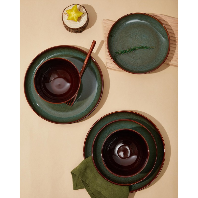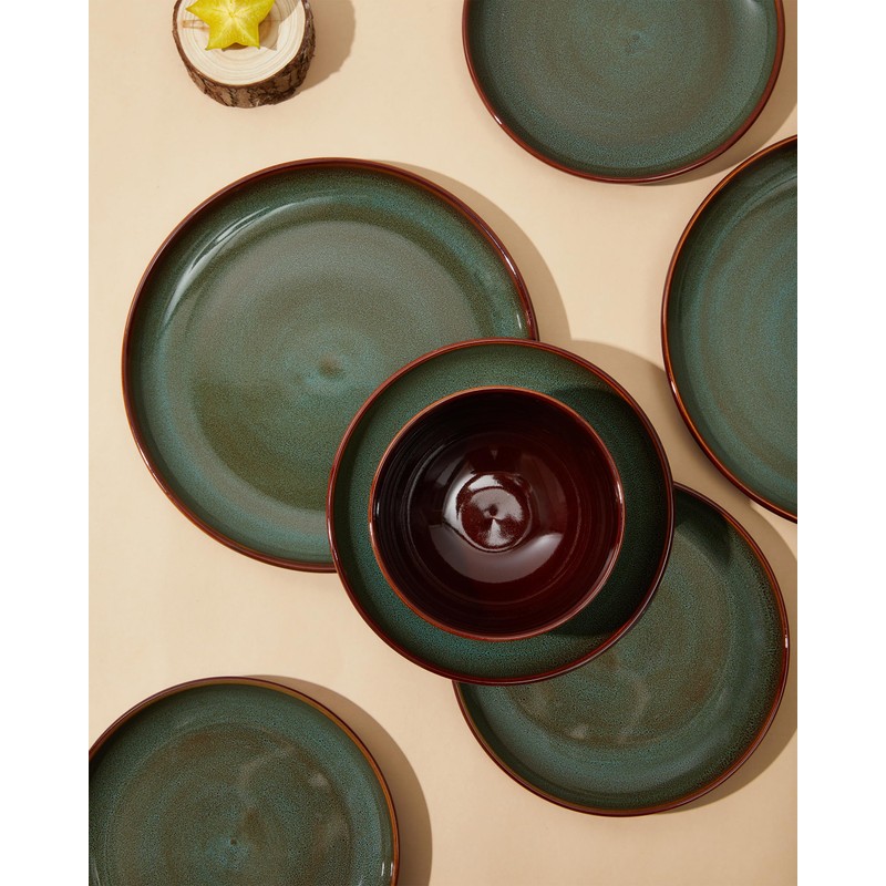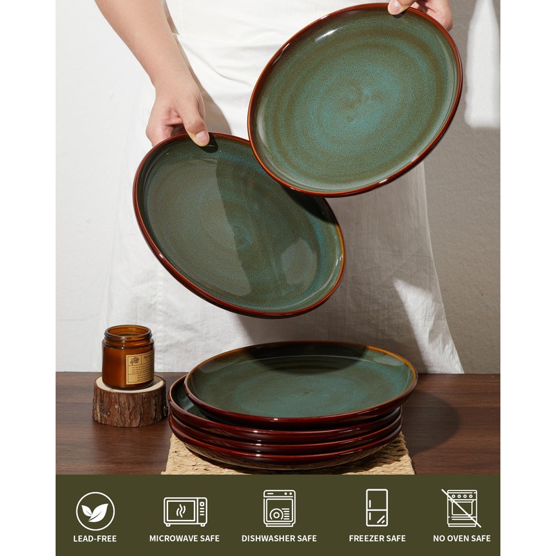 - 【Modern Elegance for Every Meal】Add a bold, sophisticated touch to your dining table with this 6 piece set of 10-inch dinner plates in a deep brown green glaze. The rich, reactive color brings modern charm to everyday meals, from casual breakfasts to elegant dinners.
