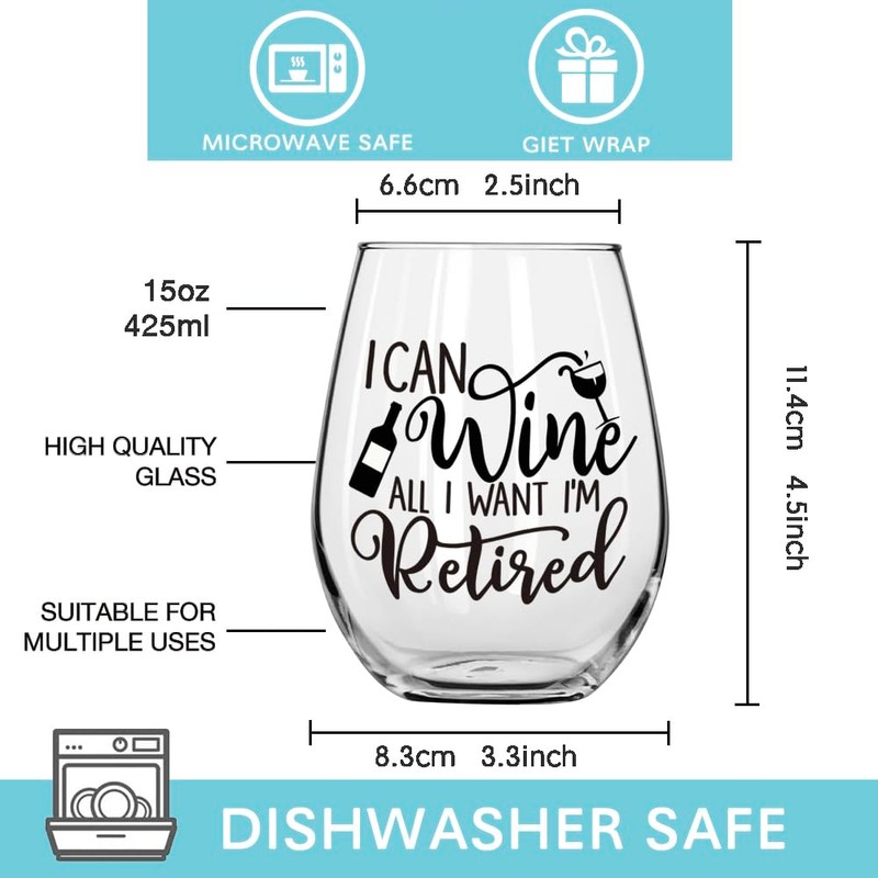Pokolllee I Can Wine All I Want I'm Retired Wine Glass - Funny Retirement Gifts for Women, Men & Coworkers