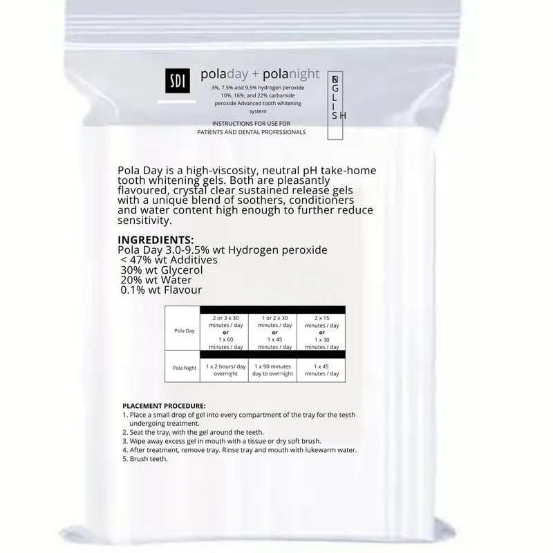 - PolaDay 9.5% teeth whitening gel set of 8: Brighten and whiten your teeth to achieve your best smile!