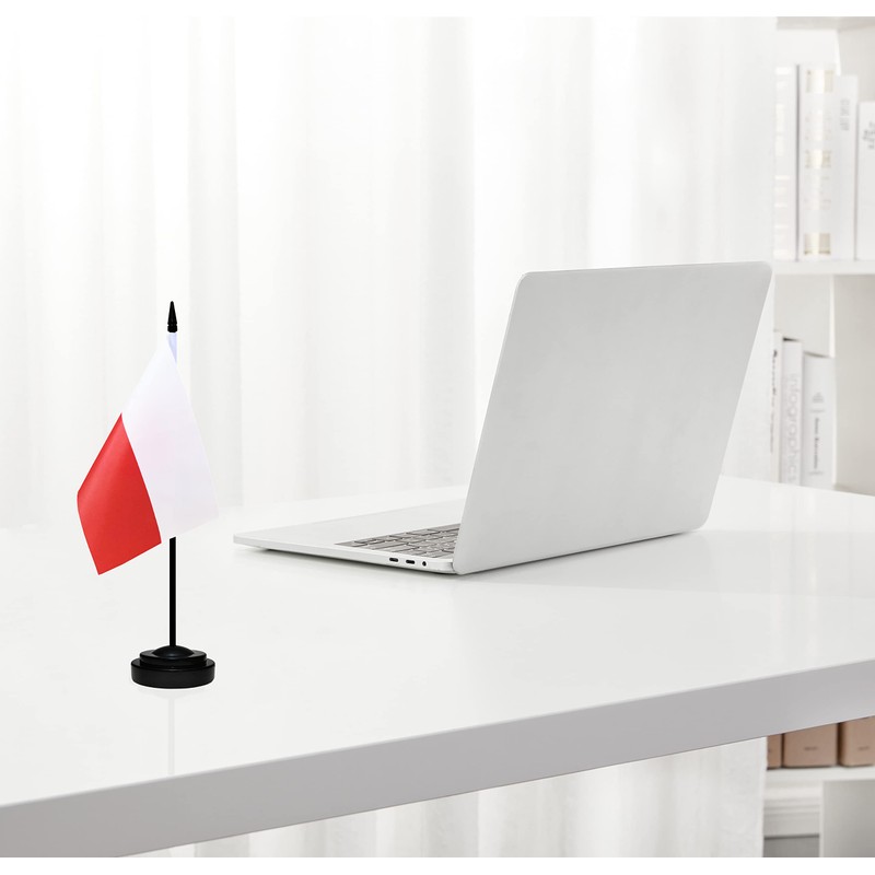 Poland Desk Flag Set, 2 Pack Polish Table Office Flags, Small Mini Desktop Flag With 12" Solid Black Pole, Black Base, Miniature Desktop Flag