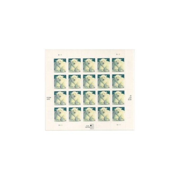 Polar Bear Sheet Twenty 28 Cent Stamps Scott 4387