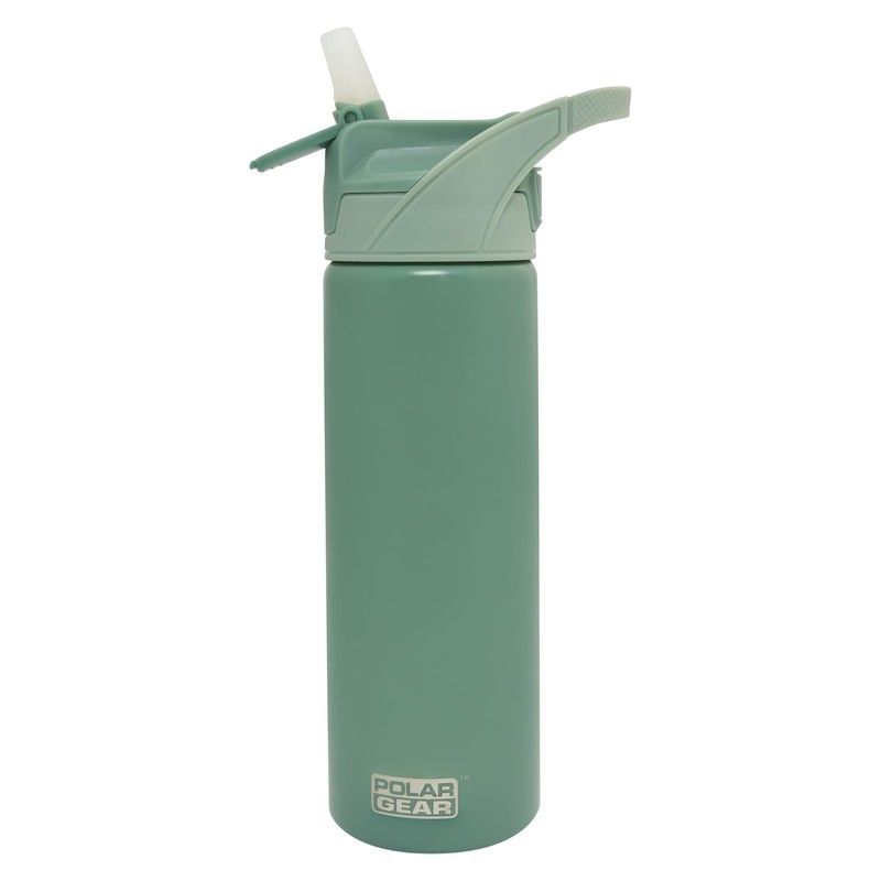 Polar Gear 575ml Stainless Steel Water Bottle with Straw - Double Wall Insulated Water Bottle With Straw - Leakproof Sports Water Bottle with Push Button Soft Spout Release & Carry Handle (Eucalyptus)