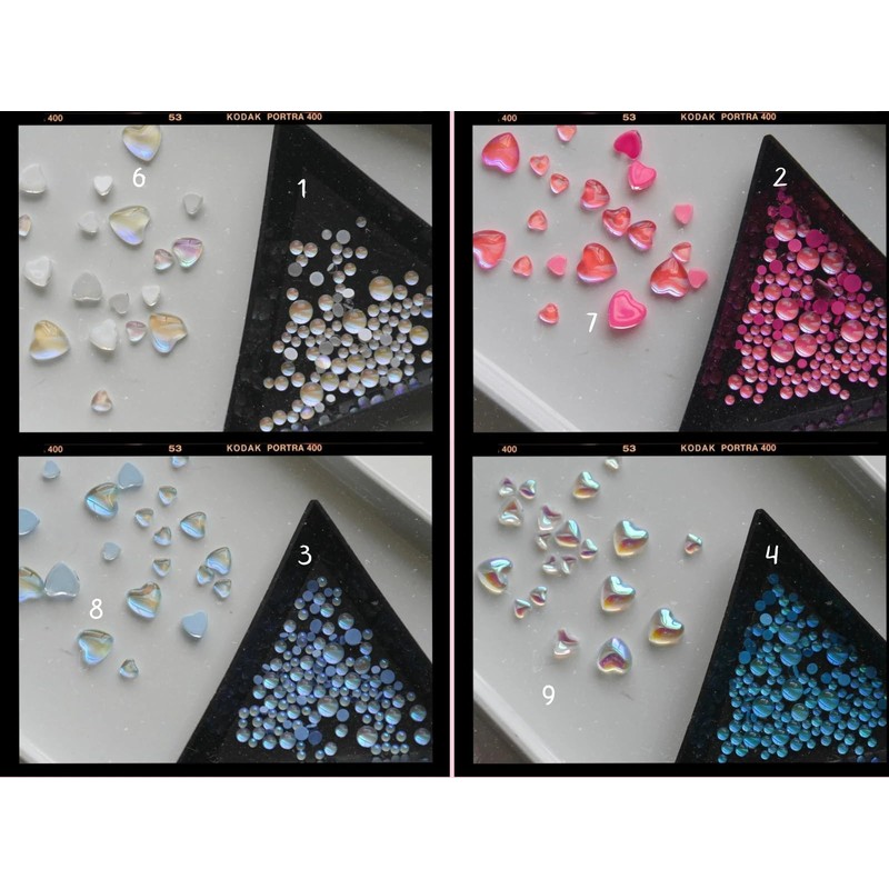 - Glass rhinestones, that are ideal for nail art. The set includes a range of sizes and shapes, including heart-shaped pearls, and can be used to create a variety of designs. These pearls have a flat back, making them easy to apply to nails using glue or other nail art adhesives. They are perfect for adding a touch of elegance and sophistication to any nail design.