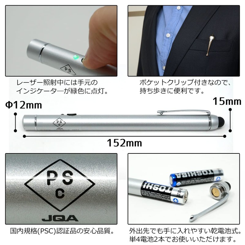 POLARIS Laser Pointer, Green Laser Pointer, Silver Model, Green Laser, PSC Certified, RB-18G, Presentation, Crow Prevention