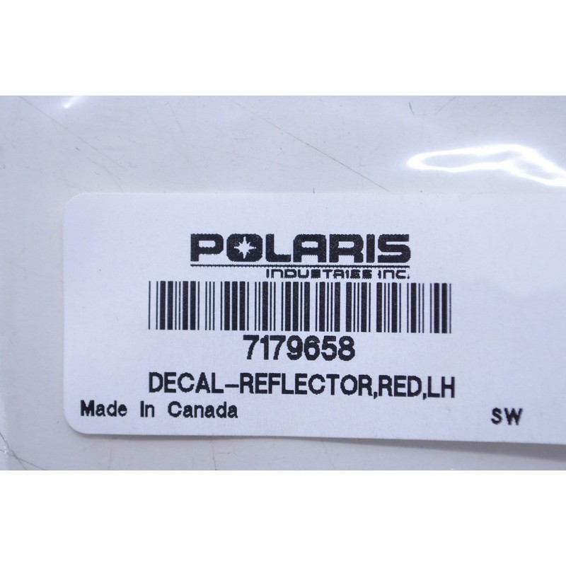 - Reflector Decal, Left, Red, Part 7179658, and all other Polaris Engineered service parts, deliver unmatched performance and fit for your vehicle. Each one is extensively tested in the field and meticulously crafted to match your machine.
