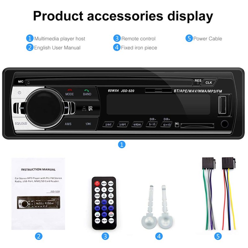 - ☆Support the adjusting of multiple sound effect models and independent output(for example: Treble, Bass, Balance, Fader),Support name indication of ID3 English songs. Support folder play function. Sound effect models: classic,jazz,pop,rock.