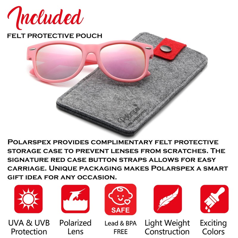- INCLUDES CARRYING CASE - Each pair of youth sunglasses comes with a soft felt carrying case, making it easy to protect the sunglasses and keep them clean while on the go.
