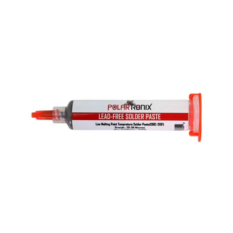 PolarTronix Low‑Melt Solder Paste 38 g Syringe Sn42/Bi58 138 °C – No‑Clean Flux PolarTronix