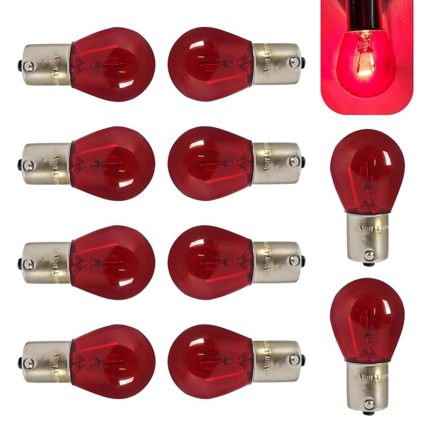 Polcatay 10 PCS 1156 Turn Signal Light, P21 W 1141 S25 12 V 21 W BA15S High Brightness Halogen Bulb, Quartz Glass Waterproof Indicator Bulb Replacement, for Most Cars Trucks Motorcycles (Red)