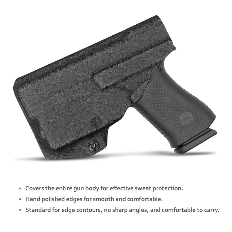 - US .08” KYDEX HANDCRAFT: It is lightweight, sturdy, durable, sweat-proof, waterproof and washable, providing comfort and confidence in any situation. Our holster covers the entire body, effectively preventing sweat and avoiding clips Clothes can be safely and safely used.