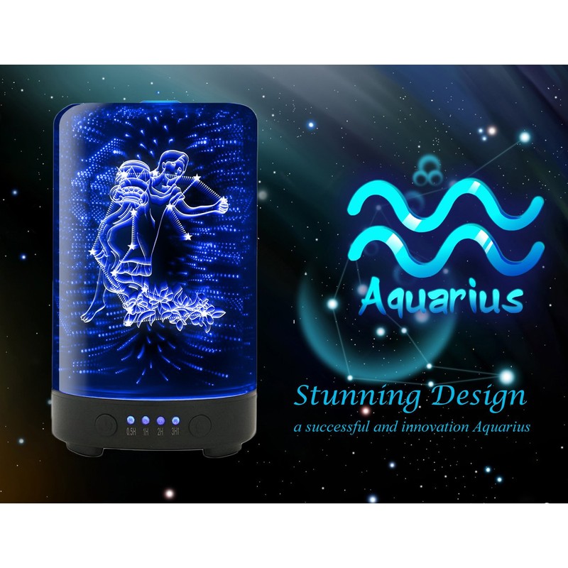 Enjoy revitalizing, multi-sensory benefits with the eye-catching Aquarius essential oil diffuser by Polennon. Lift the 3D glass cover, fill the reservoir with water and your favorite blends of essential oils, and enjoy reliable, consistent diffusion with the touch of a button. The 100ml tank is the perfect size to keep at home or take on the go as a portable ultrasonic diffuser. After approximately four hours of silent, continuous cool mist diffusion, the humidifier will automatically shut off when water is running low. Sit back and relax while you watch the Aquarius design shift and move with a 3D color changing design. There are seven color options to choose from and the calming light is perfect for romantic evenings, focused study sessions, or a child’s bedroom. The Polennon zodiac-themed essential oil diffuser combines health and style, making it the perfect gift for yourself or a friend. Package included: 1 x 3D Glass Oil Diffuser 1 x Safety Wall Charger 1 x User Manual Warranty We provide the 12 months warranty and 24hours Customer Service Support