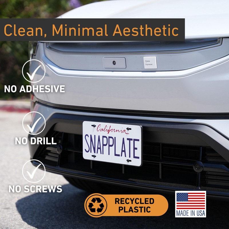 Polestar 3 (2025) No-Drill Front License Plate Holder Mounting Kit, No Adhesives, Removable, Frame - Fast, Easy, Grille-Safe - SnapPlate® Made in USA