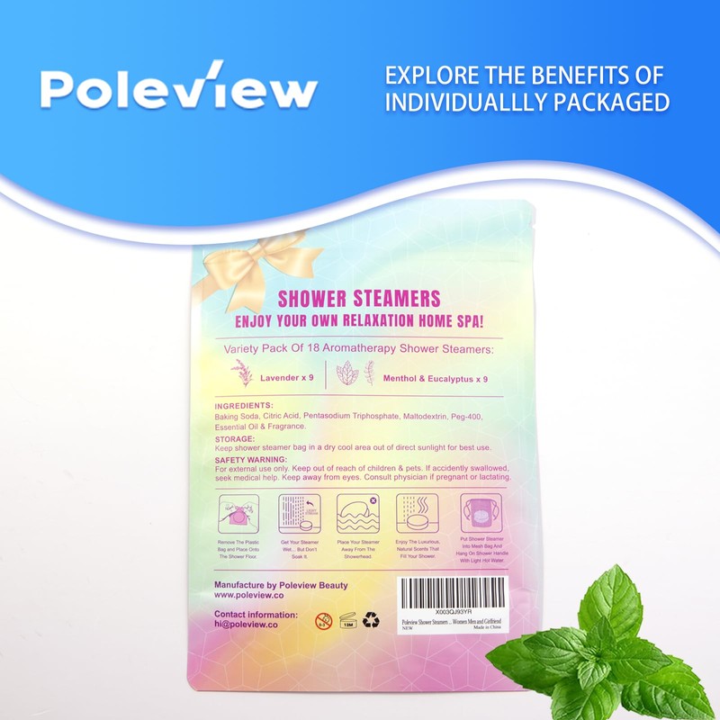 Poleview Shower Steamers Aromatherapy, 18 Pack Lavender, Menthol & Eucalyptus Shower Bombs with Essential Oils for Relaxation & Home Spa, Stress Relief Gifts for Women Men and Girlfriend