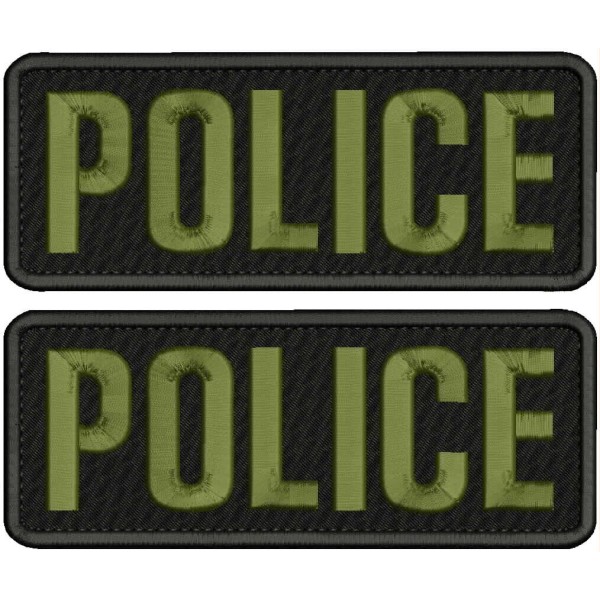 POLICE 2 EMBROIDERY PATCHES 3X8 '' VELCR@ ON BACK OD GREEN ON BLACK