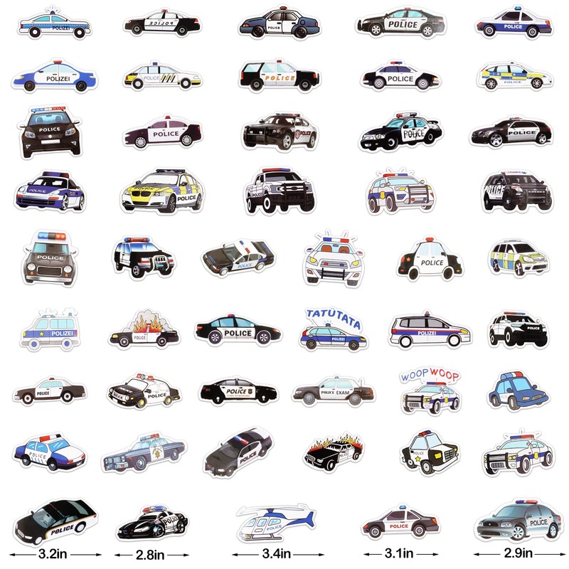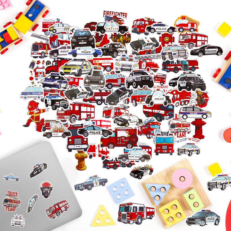 - 【WATERPROOF】Package comes with 50 pack firetruck and 50 pack police vehicle stickers, Including assorted cartoon cars realistic police truck and firefighter equipment stickers.