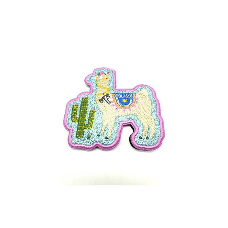 Police Lama Textile Patch – Police – Pink – Cactus – Velcro Patch – Fun Patch