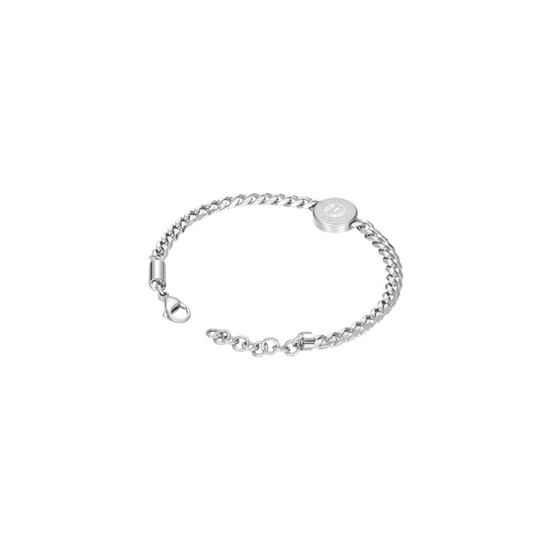 • A chunky stainless steel chain with a bold POLICE logo disc charm at the centre, designed to sit on top of the wrist, makes a statement wherever you go, reminding you to conquer the world with your own unique style.