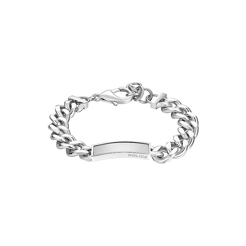 Police Revenge II Mens Stainless Steel Polished Motif Chain 19cm Bracelet