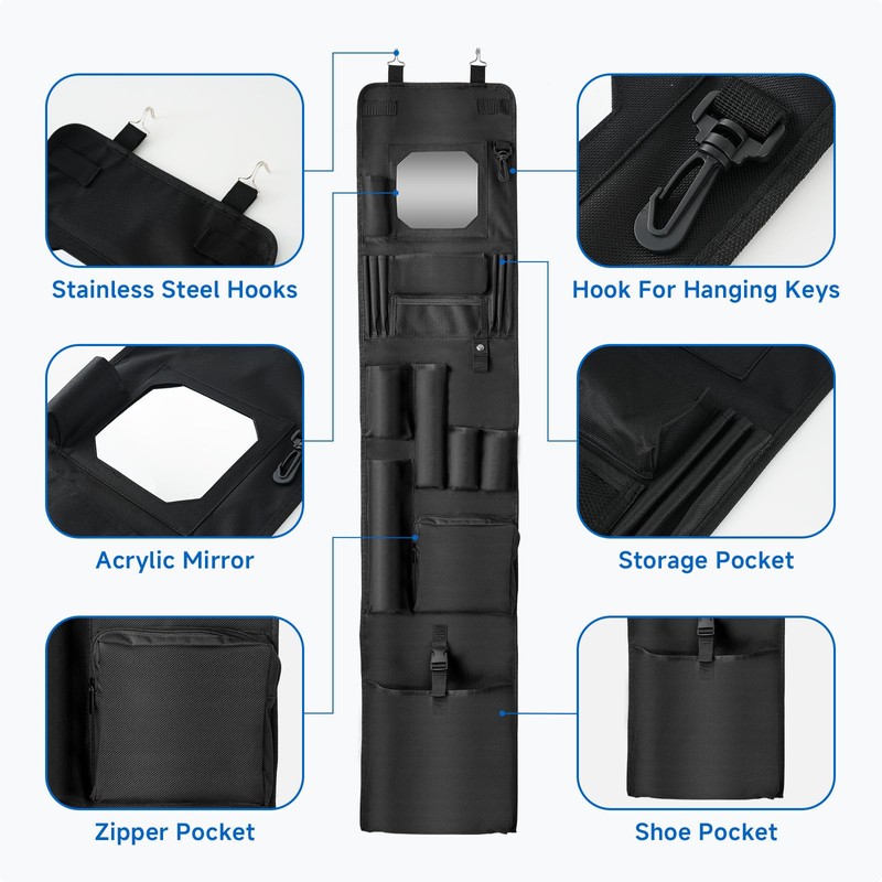 • Multi-pocket Design: Police style hanging closet with 1 acrylic mirror, 6 cylindrical item pockets, 1 key hook, 6 pen pockets, 1 medal pocket, 1 document pocket, 1 shoe bag, etc. which are enough to meet your diverse storage needs.