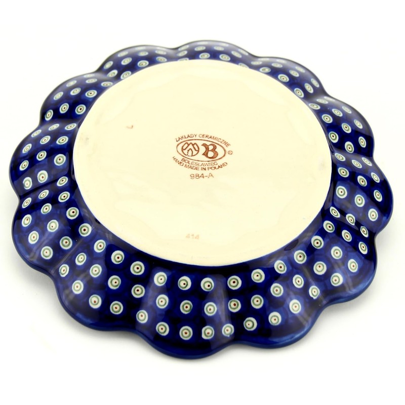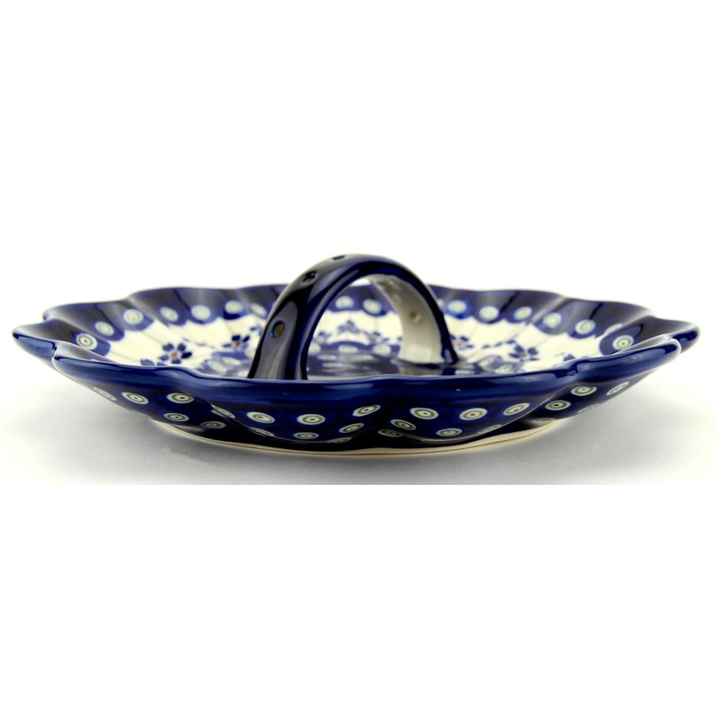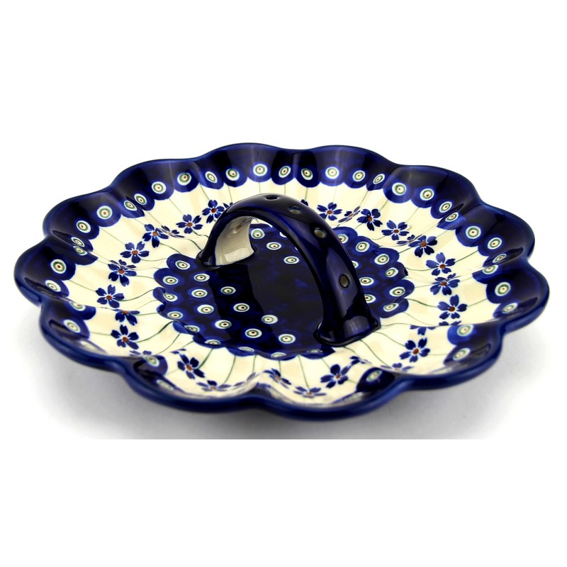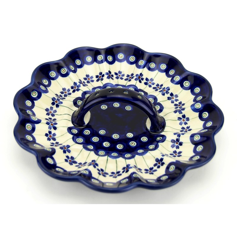 Polish Pottery Deviled Egg Platter, Round Deviled Egg Tray, Deviled Egg Carrier, Zaklady Boleslawiec, Poland, Floral Peacock Design, Capacity: 12 Eggs, Diameter: 9.5 inches