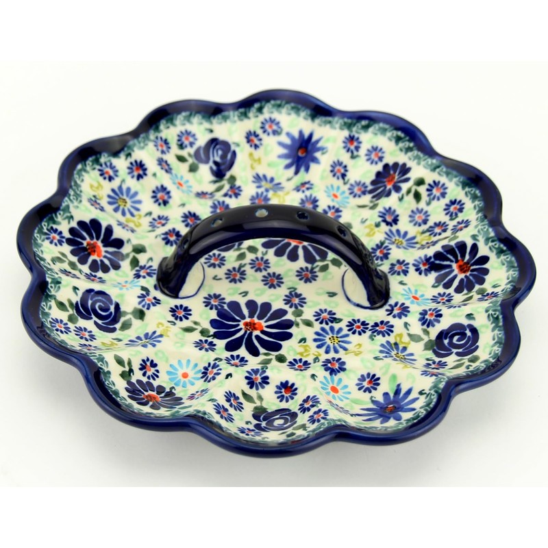 Egg Plate great for serving 12 deviled eggs from Polish Pottery Market in DU126 pattern. Manufactured in Boleslawiec Poland. All Polish Pottery pieces are dishwasher and over safe
