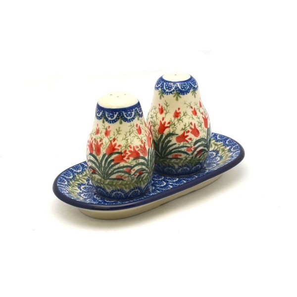 Polish Pottery Salt & Pepper Set - Crimson Bells
