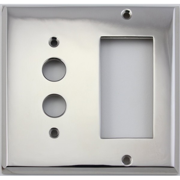 Polished Nickel 2 Gang Combination Switch Plate - 1 Push Button Light Switch Opening 1 GFI/Rocker Opening