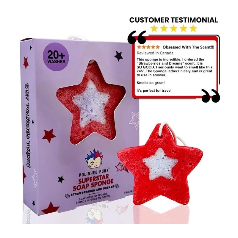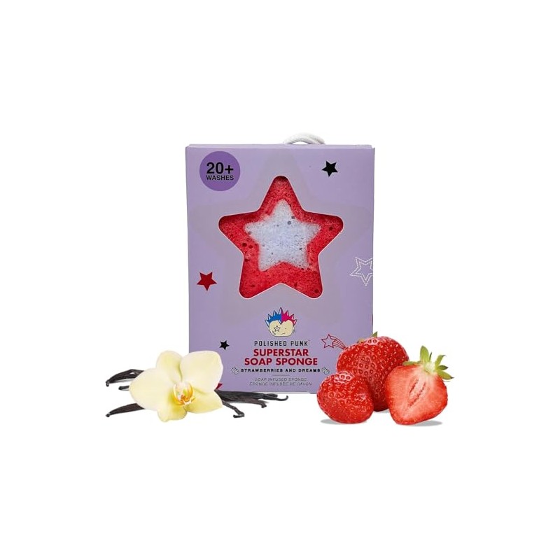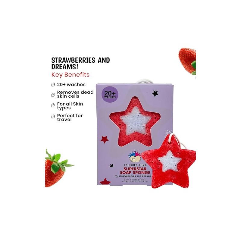 Polished Punk Polished Punk - All-Natural Soap-Infused Sponge for Kids and Tweens, Gentle on Skin, 20+ Uses (Strawberries and Dreams)