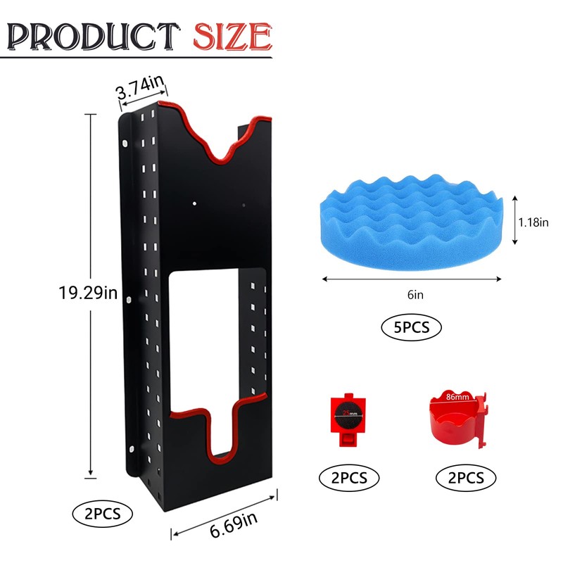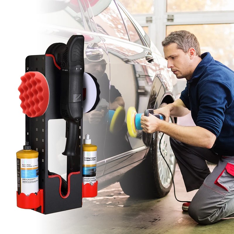 This polisher holder gives you a holder on your polisher, provides space for all types of polishers. Suitable for angle grinder, cutting machine, polisher, miter saw, buffer, waxing machine, etc.