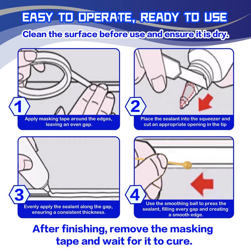 - Easy to Use: The sealant features a user-friendly formulation, ensuring that both professionals and DIY users can use it with ease. Its excellent flow allows for easy application directly from the tube, making it ideal for tight or irregular spaces, ensuring that every corner can be perfectly sealed.