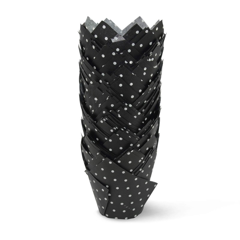 Polka Dot Black Medium Size Tulip Baking Cups Cupcake Liners Muffin Liners Greaseproof Paper 100