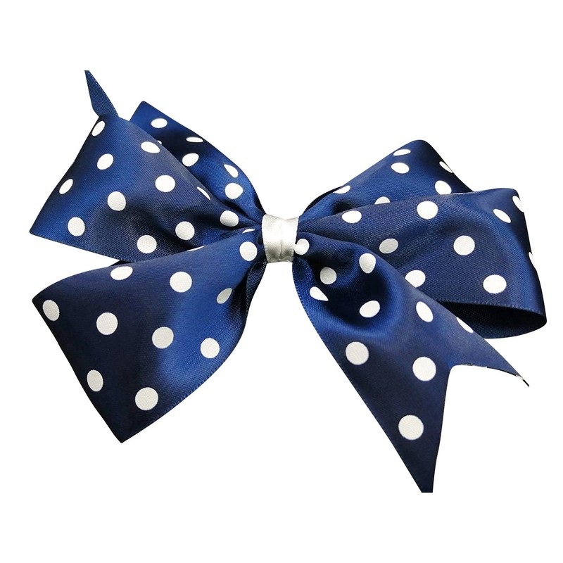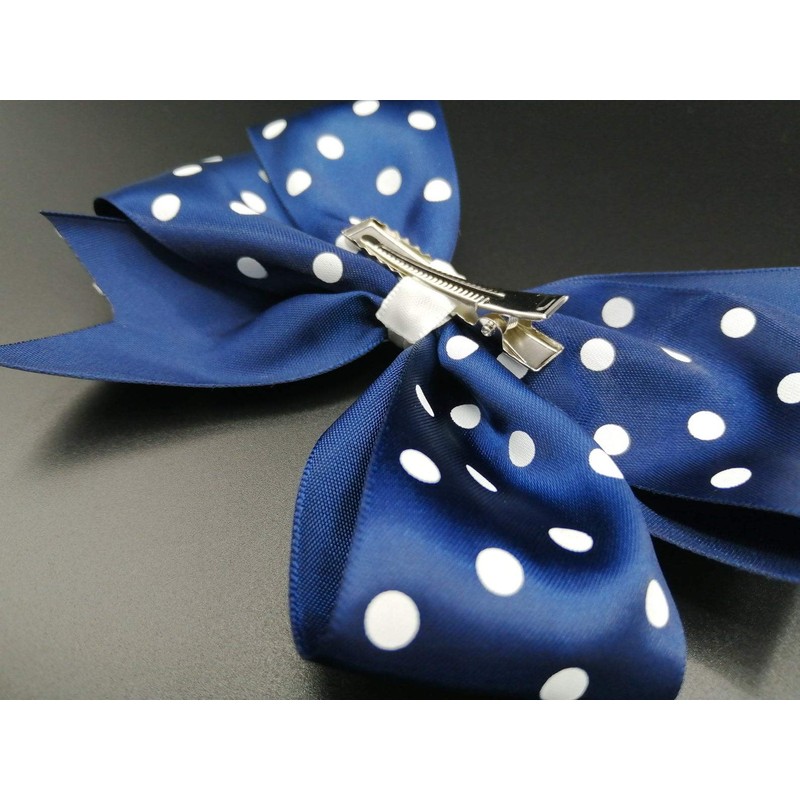 Polka-Dot Hair Bow Accessory Handmade with Blue and White Satin Ribbon and with Crocodile Clip