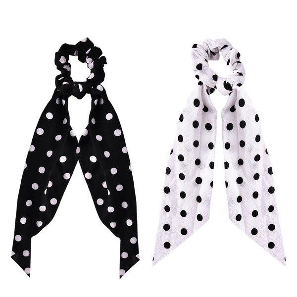 Polka Dot Hair Scrunchies for Women Girl Bowknot Ponytail Holder Stretchy Long Tail Hair Accessory Elastic Hair Band Tie Black White Polka Dot Chiffon Hairband Rubber Band Accessories 2 Pcs