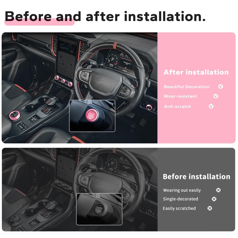 - 【Matches Model】: Fit for 2023 2024 2025 Ranger. Including: A/C×2, push start×2, volume×1, 4WD×1, headlight switch×1, Double-check that your knob layout matches the product photos before buying