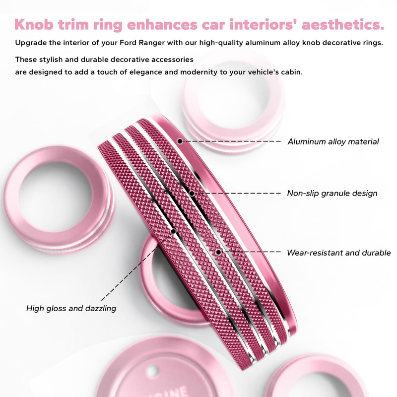 Polodunn for Ford Ranger Accessories 2023-2025, 7pcs Aluminum Alloy Knob Covers Trim Set - A/C, Volume Tune, Push Start, 4WD & Headlight Switch (Pink)