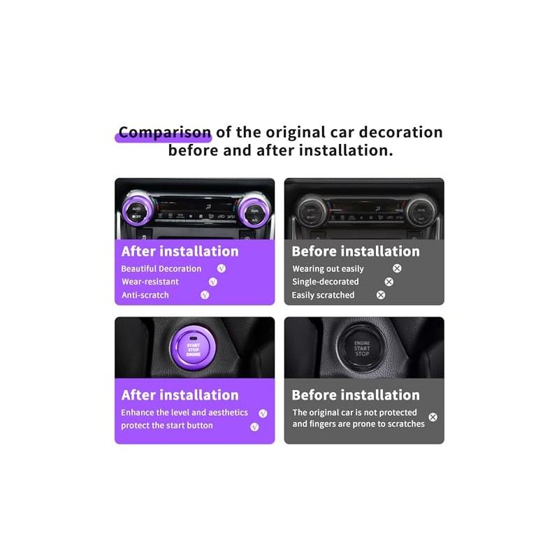 • What you get : 4pcs aluminum alloy trim accessories (included: air conditioner knob cover *2+ car engine start button cover trim ring *2), 30-day free return & 365-day warranty worry-free service